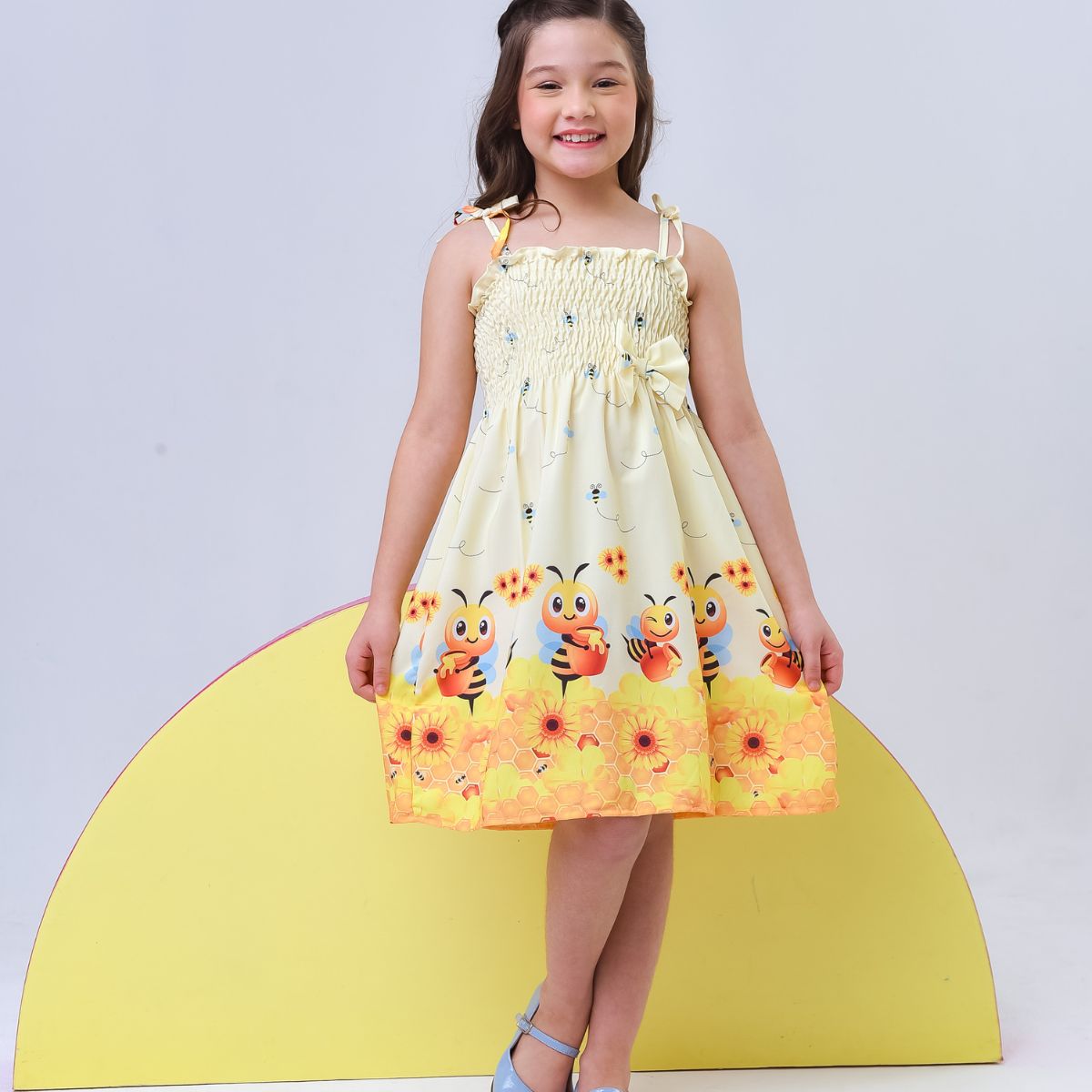 Vestido infantil estampa da Abelhinha modelo ciganinha