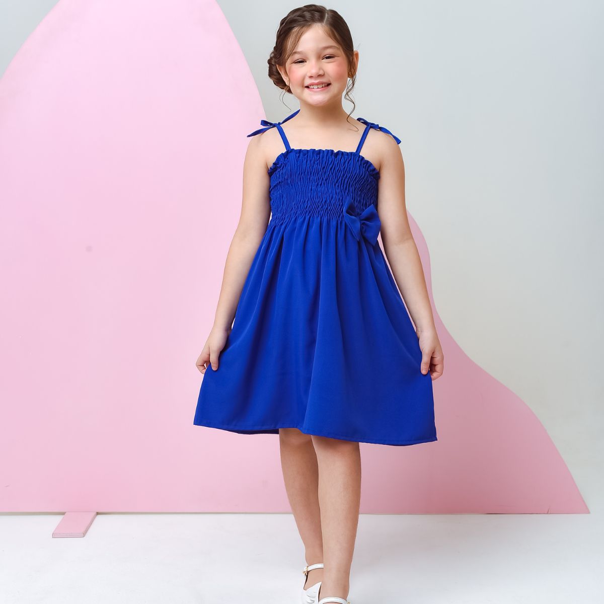 Vestido infantil menina na cor Azul Royal de alcinha modelo ciganinha